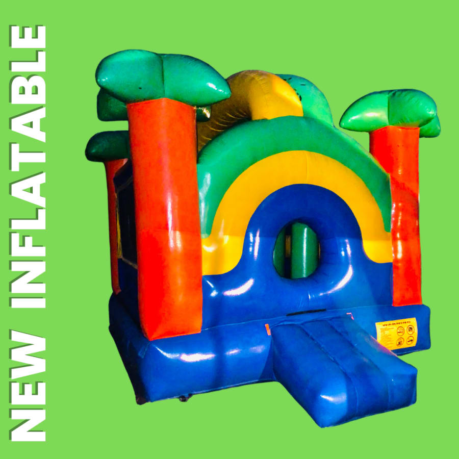 🌴 Get ready to turn your party into a tropical paradise with our Paradise Interactive 15' X 15' Bounce House Rental! This vibrant bounce house features a delightful color scheme of bright orange, yellow, green & blue to bring loads of joy to your next event. 🎉