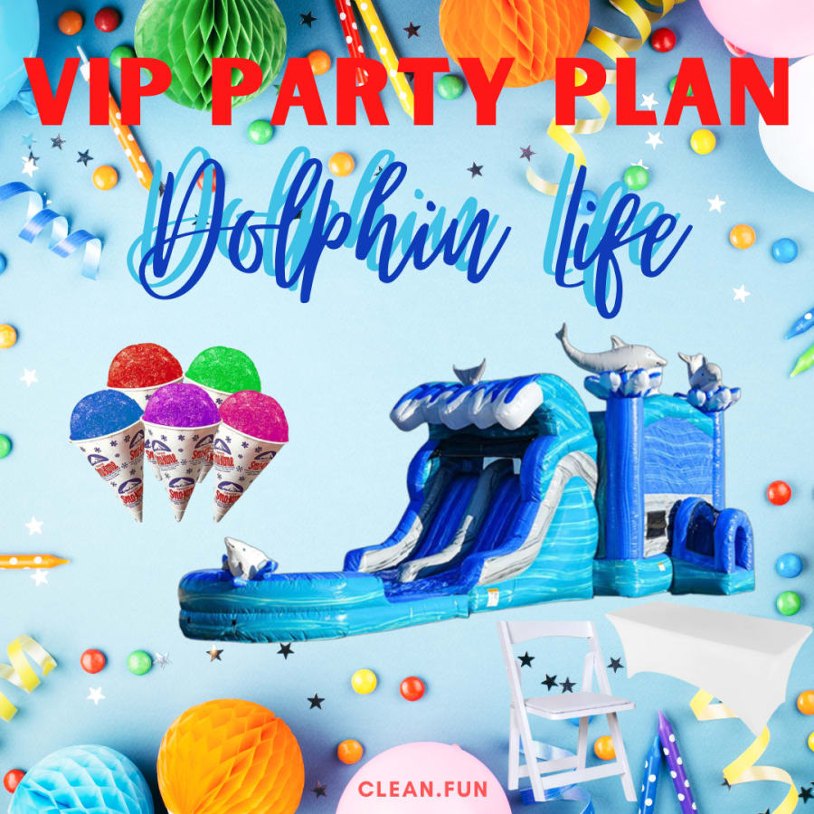 The Clean Fun VIP Party Plan is your solution to getting everything you want & need but at the lowest possible price. Over $800 in rental equipment is included. Add a cake, drinks & food and your all set for party success.